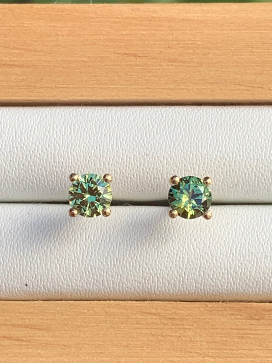 Australian Parti Sapphire Earrings ~ 4mm Gold Studs