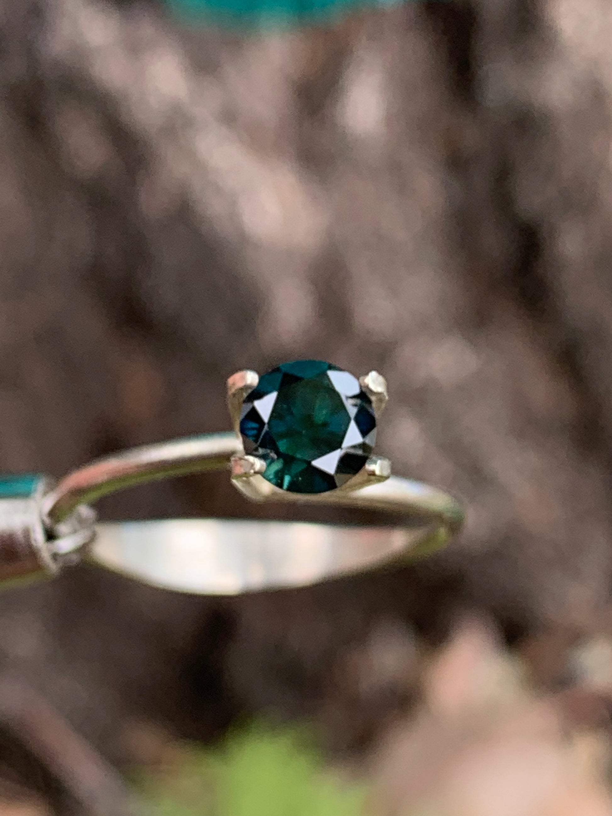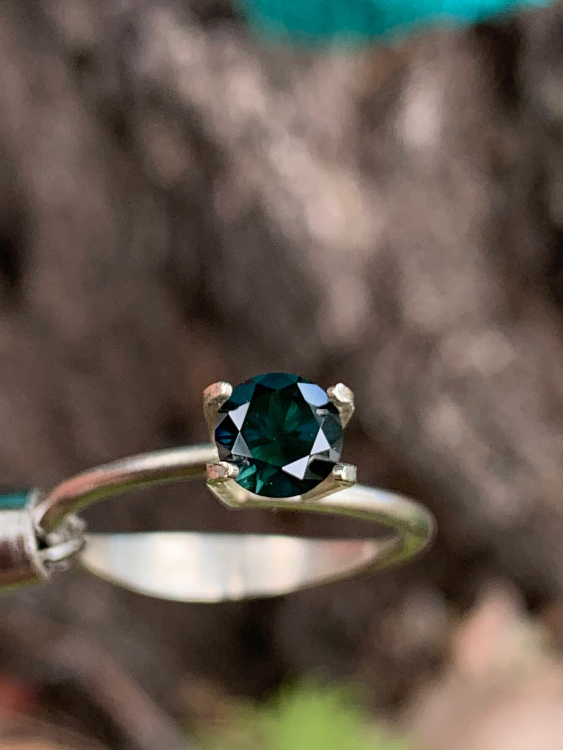 This deep teal Australian sapphire with flecks of green was originally specked by Matt in Rubyvale area C. Qld Australia. Faceted locally by Amber.