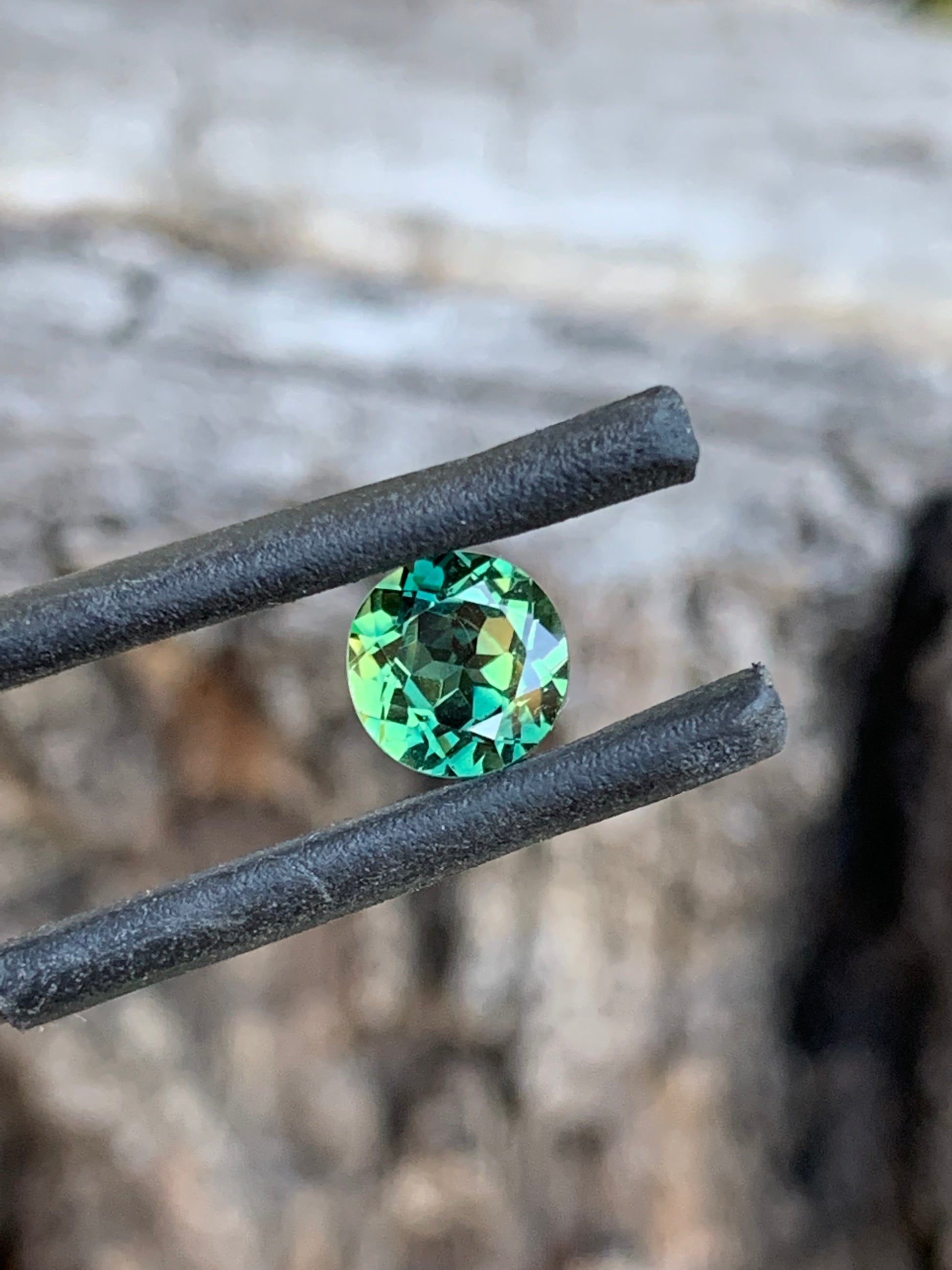 A unique 1.05ct round Teal Australian Parti Sapphire. Yellow zoning creates a mesmerising blend of teals. Ethically sourced from the Central Queensland Gemfields — perfect for a one-of-a-kind ring or fine jewellery piece.