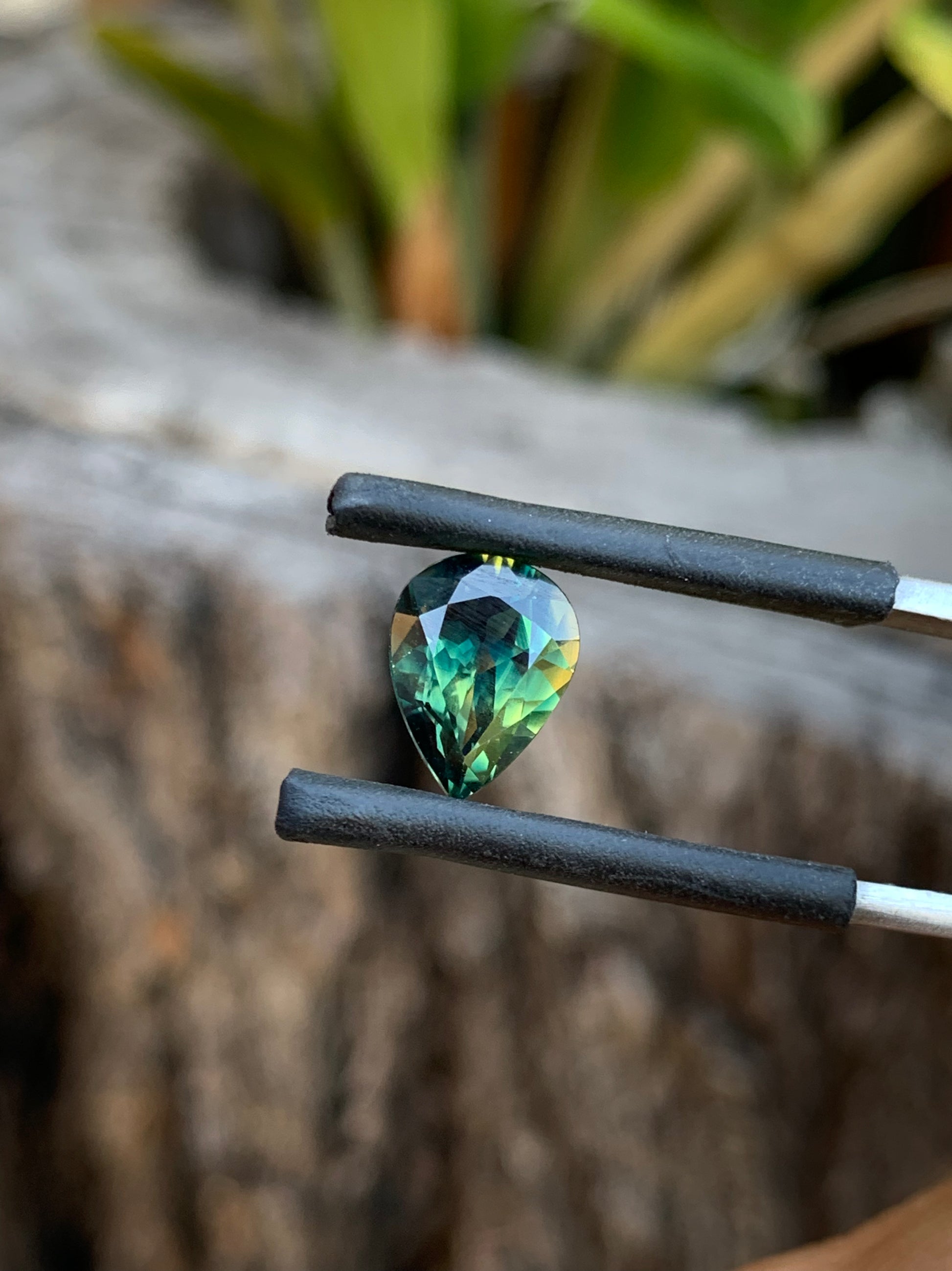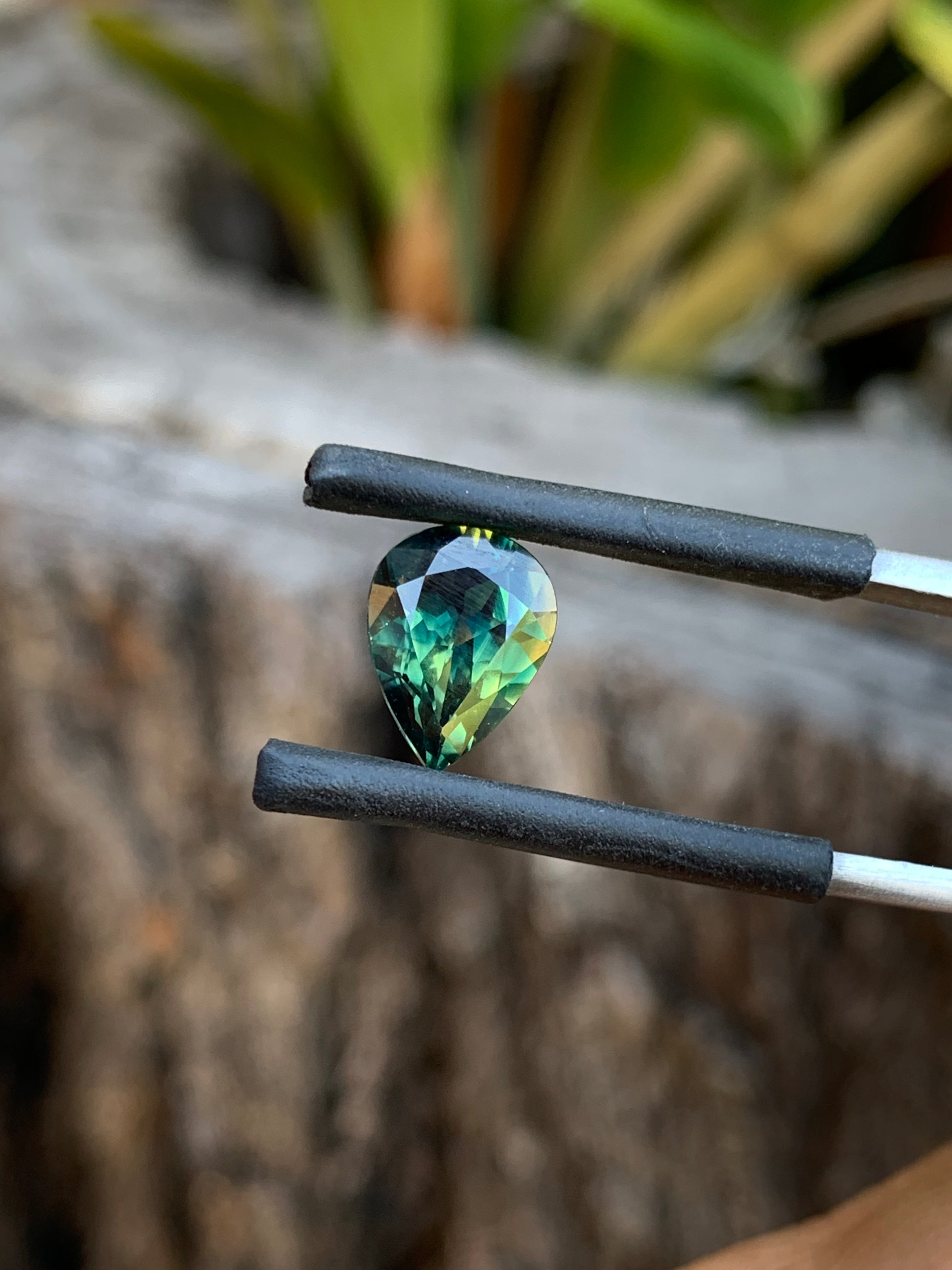 A bold 2.54ct Pear Australian Parti Sapphire. Yellow zoning blends throughout to display a dance of blue, green and yellow. Ethically sourced from the Central Queensland Gemfields — perfect for a one-of-a-kind ring or fine jewellery piece.