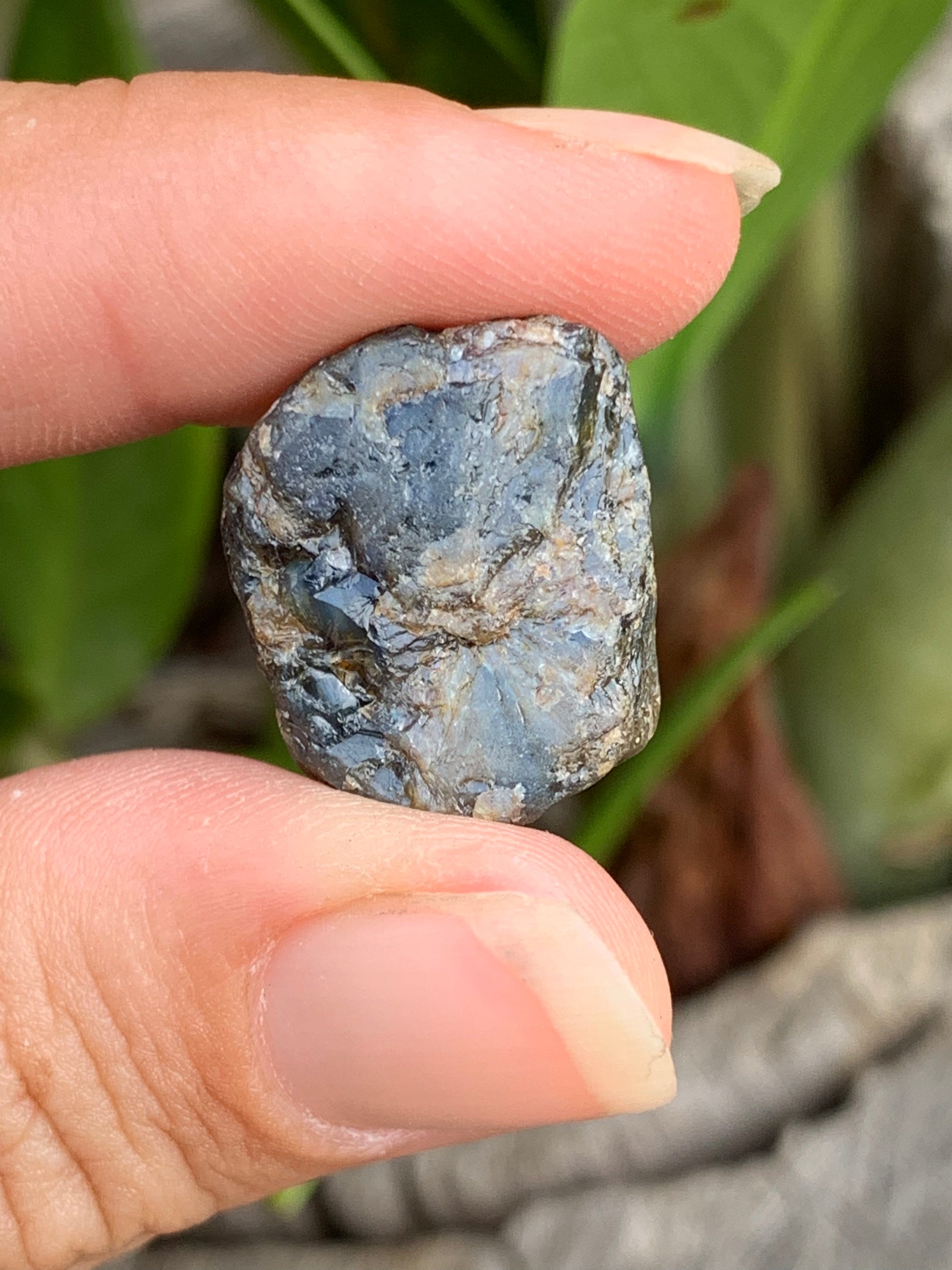A fascinating 39ct natural sapphire specimen displaying partial trapiche formation — a rare and beautiful natural pattern. Not facet grade, but perfect for skin polishing, carving, or transforming into a truly unique jewellery piece. Hand mined by Matt in the Central Queensland Gemfields.
