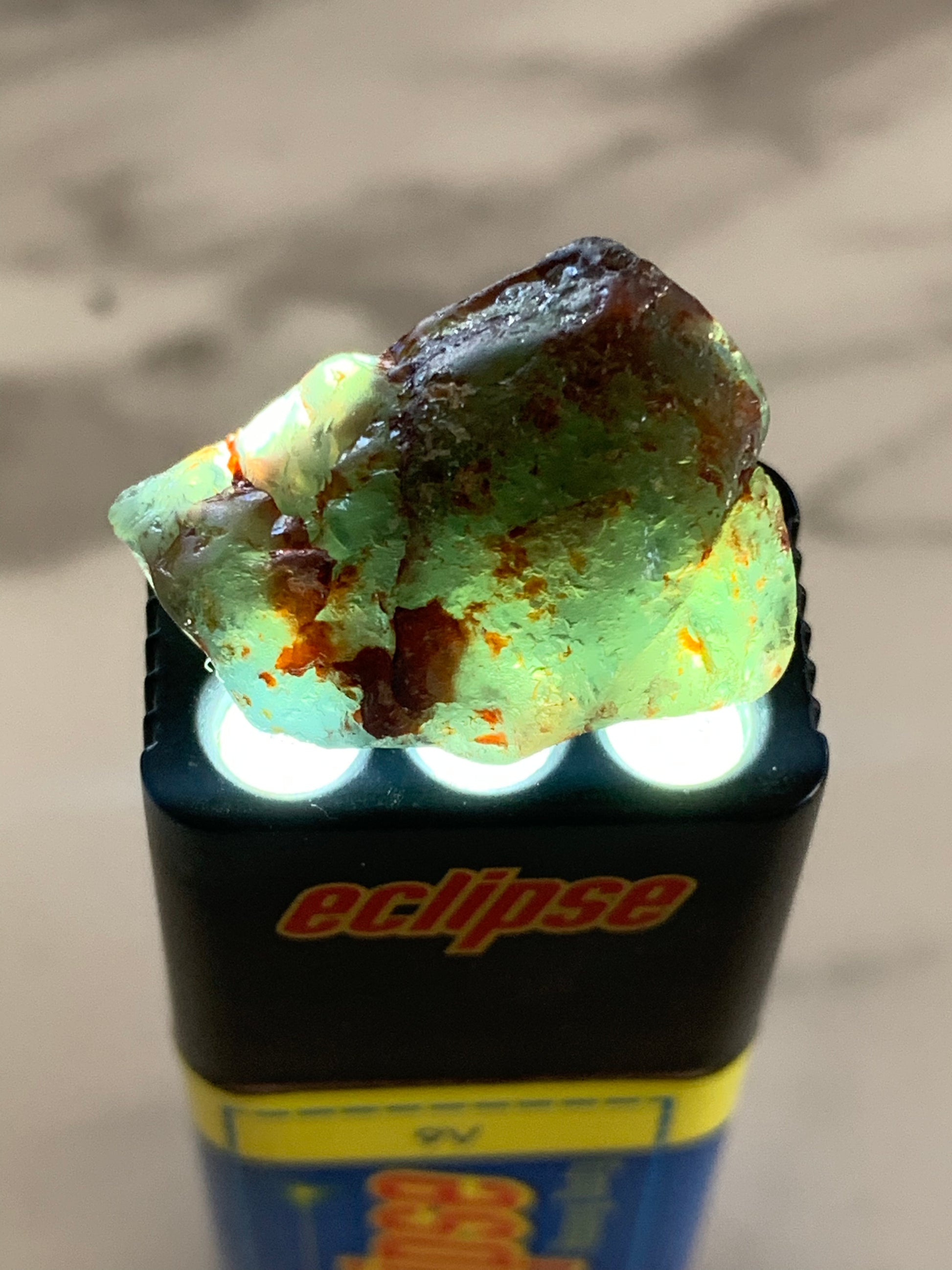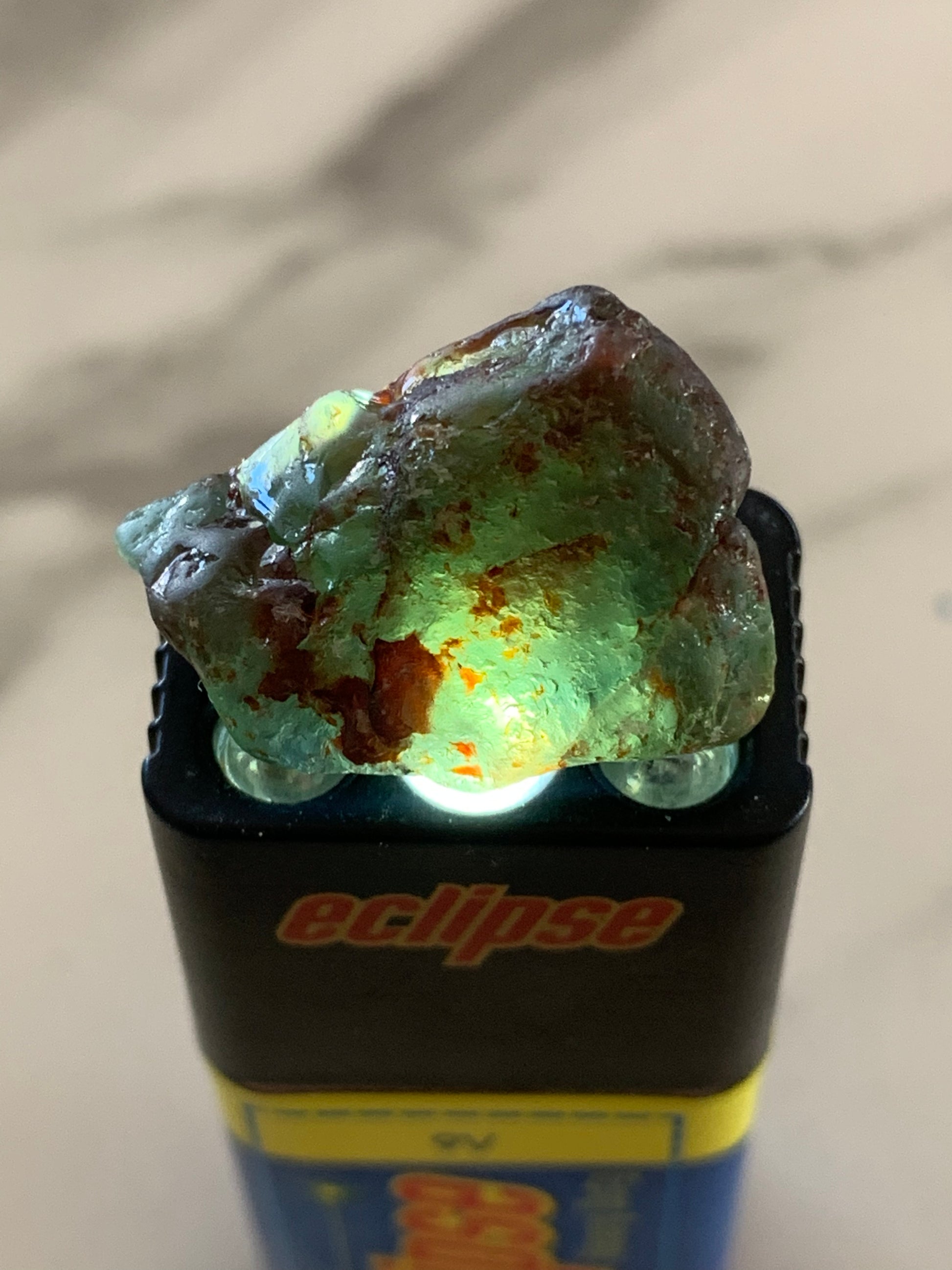 A unique 36.75ct Australian Sapphire Crystal Specimen hand mined by Matt Betteridge in the C Qld Gemfields. This specimen features stunning green/silver coloration perfect for skin polishing.
