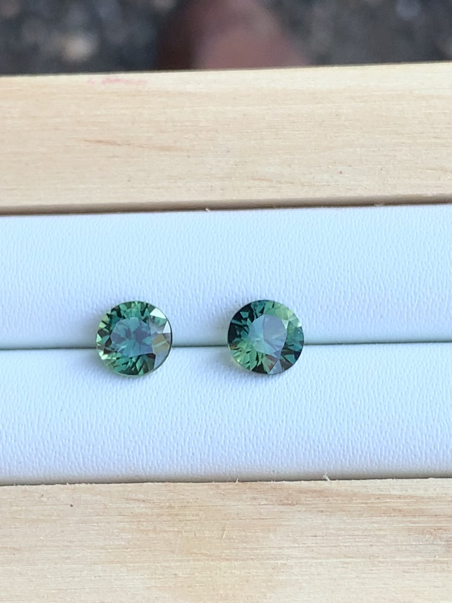 5.1mm Earring Pairs ~ Green Australian Sapphire
